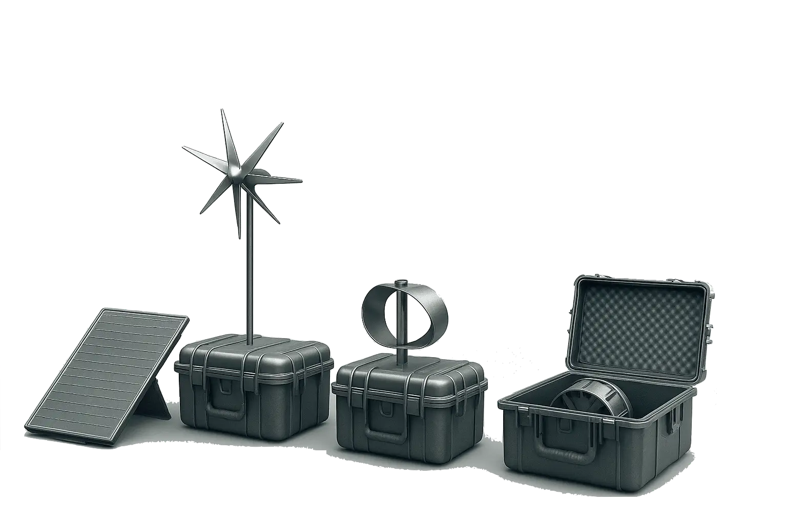 Compact solar integrated unit offering efficient, portable power for outdoor, tactical, and remote field operations.